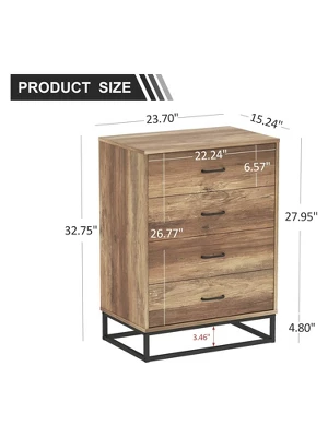 Liven up any environment with this 4 Drawer Wood Storage Dresser with Easy Pull Handle and Metal Frame from Year Color. This chest of drawers features four large drawers, a steel trestle base, easy pull handles, and smooth rails. This expertly designed piece is extremely stylish to go effortlessly with a variety of different decoration styles and aesthetics. Put it in your living room, bedroom, study, office, or other location and it will be the perfect addition. It is crafted from high-quality materials to provide a sturdy piece that will last in your home or office for a long time to come. This chest of drawers is a great addition to any room as it provides organization to keep clutter under control. Incredibly easy to assemble, it comes with clear instructions that will allow you to have it put together in no time. It will make for a lovely gift for anyone in your life as a holiday, wedding, or housewarming present. For combined beauty and quality, get the 4 Drawer Wood Storage Dresser from Year Color.