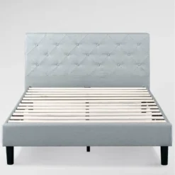 Korey Platform Metal Bed Frame With Upholstered Headboard Black – Zinus